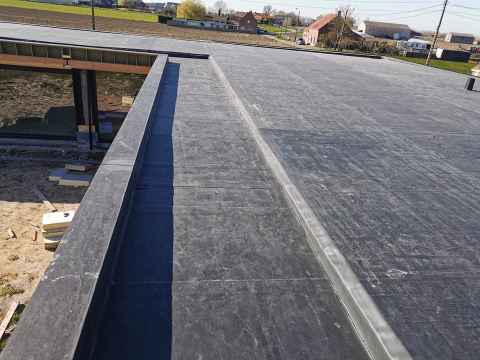 Plat dak met isolatie & EPDM rubber op nieuwbouw